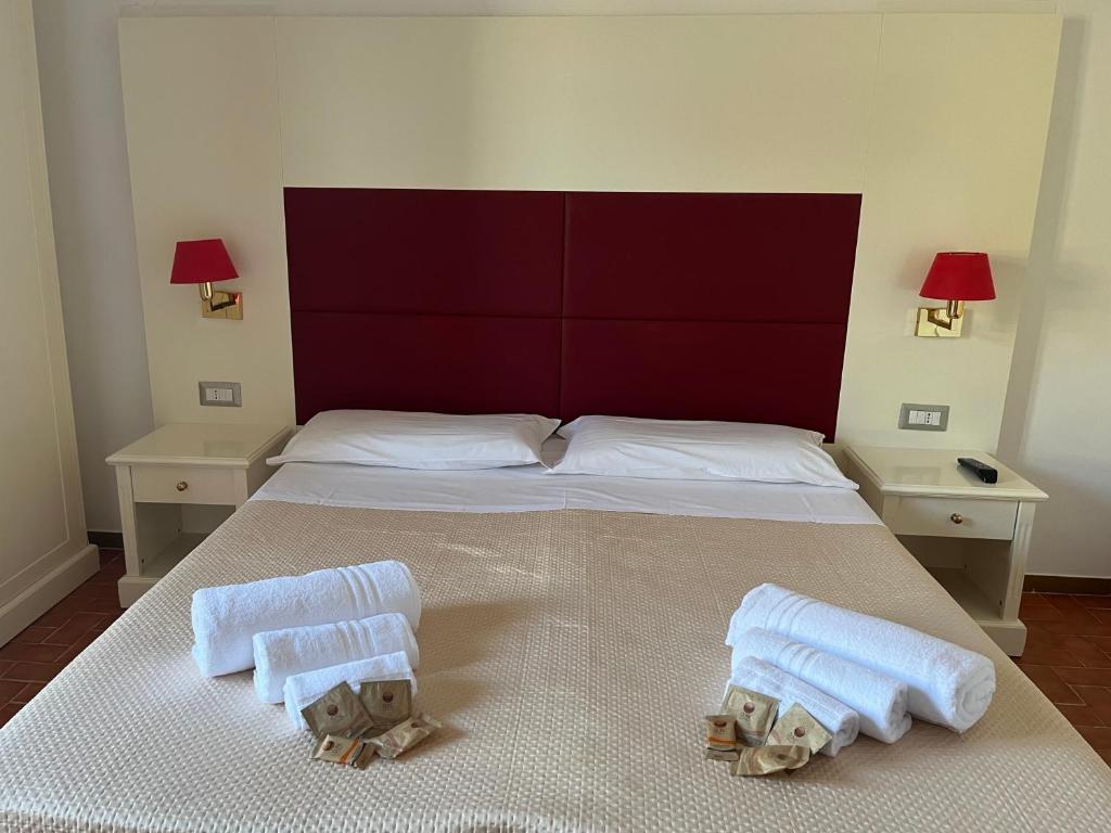 L’arredo è classico e accogliente. Tutte le camere sono dotate di aria condizionata, TV a schermo piatto con canali satellitari, bagno privato con doccia e asciugacapelli, kit di cortesia bagno, set di 3 asciugamani per ogni ospite, Wi-Fi e balconcino privato.